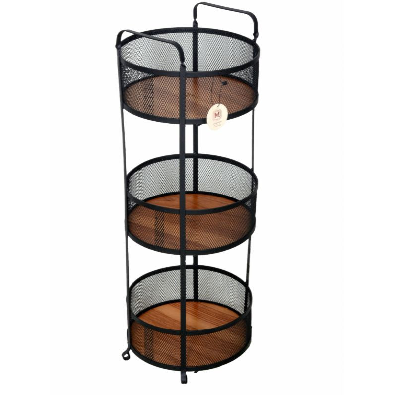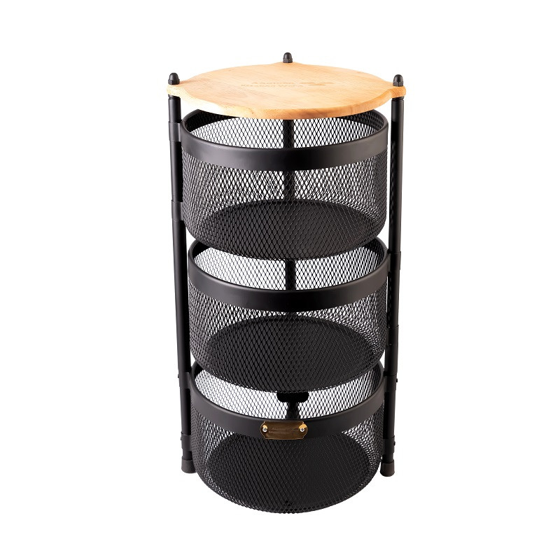 سبد سیب زمینی و پیاز آسمان مدل سه طبقه توری گرد چوبی متحرک کد 412