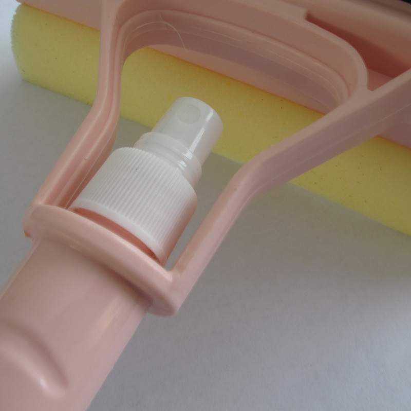 شیشه پاک کن اسپری دار ابتکار در يک سمت داراي تیغه اي از جنس پلاستیک جهت خشک کردن شيشه و در سمت دیگر داراي یک ابر اسفنجي جهت تمیز کردن شيشه مي باشد. در زیر قسمت پاک کننده یک آبپاش با سری اسپری تعبیه شده است. از دسته محصول به عنوان مخزن برای مایع شوینده استفاده مي گردد.