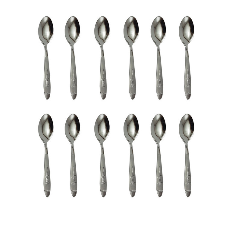 قاشق مربا خوری مدل میخک شامل 12 عدد قاشق با کیفیت و براق با استیل ضخیم 2 میلی متری خارجی طول هر قاشق 15 سانتی متر