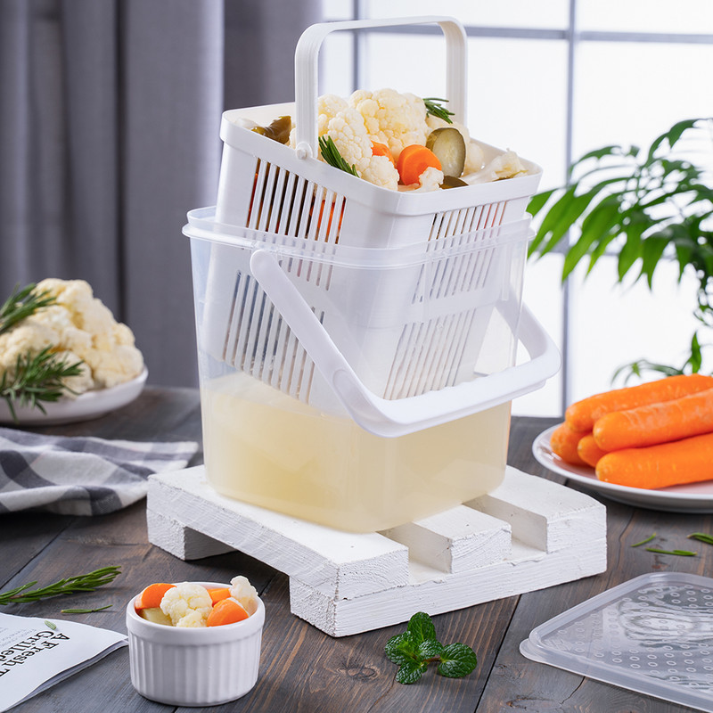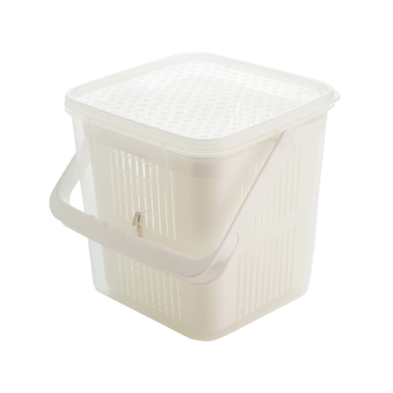 یک ظرف نگهدارنده به همراه یک سبد آبکش و یک در از جنس پلی پروپیلن به گنجایش داخلی 2.750 لیتر، وزن 179 گرم و ابعاد 16 × 16.7 × 16.2 سانتیمتر - BPA Free - قابل بازیافت - دارای تاییدیه انجمن نانو - آنتی باکتریال - ضد گرد و غبار