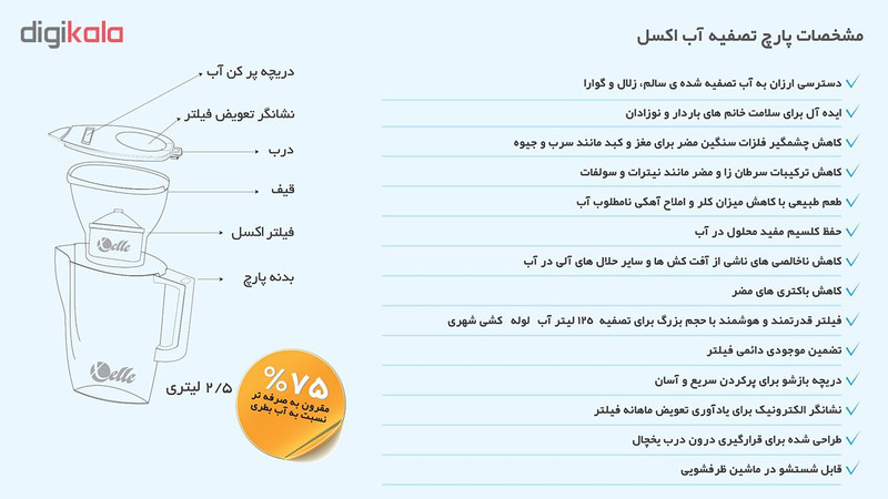 پارچ تصفیه آب اکسل مدل 25 به همراه فیلتر تصفیه کننده آب