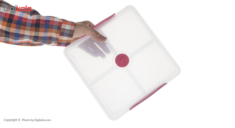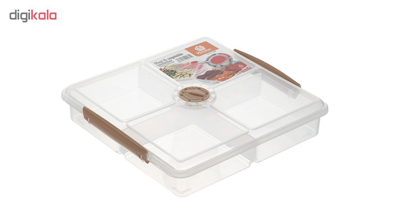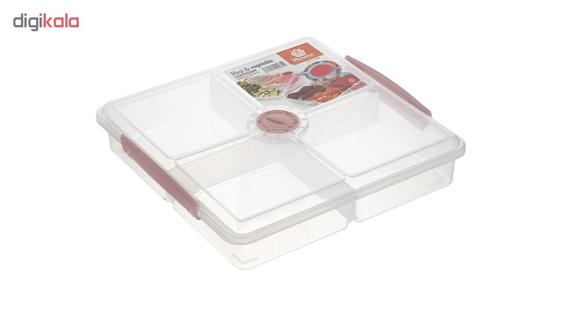 ظرف نگهدارنده «Homket» (هومکت) کد «3708» از چهاربخشی جداگانه تشکیلشده است که میتوانید همزمان چهار نوع مادهی غذایی را داخل خود قرار دهد . ابعاد این محصول با طول 22.5، عرض 22 و ارتفاع 4.2 سانتیمتر که مقدار قابلتوجهی موادغذایی را داخل خود جا میدهد و وزن بسیار سبکی دارد. درپوش این ظرف با دو گیرهی کلیپسی بسته و محکم میشود و اجازه نمیدهد بوی سایر مواد غذایی داخل یخچال به غذای شما نفوذ کند. نگران شستوشو این ظرف نگهدارنده نباشید میتوانید آن را کنار ظروف دیگر در ماشین ظرفشویی بشویید ولی بههیچعنوان آن را داخل مایکروفر فرار ندهید. باقیمانده غذایی که از هر وعده میماند را نباید در ظروف فلزی نگه داشت، بهترین گزینه برای نگهداری غذا ظروف پلاستیکی هستند که ما به شما ظرف نگهدارنده «هومکت» پیشنهاد میکنیم.