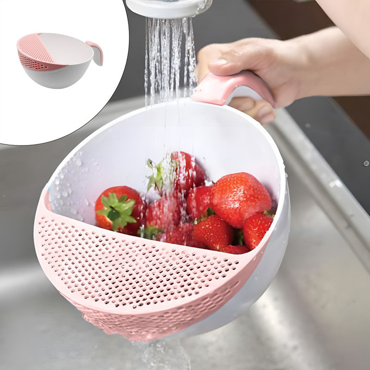 2 پارچه : کاسه و رویه آبکش مانند -قطر دهانه 20 سانتیمتر -عمق: 10 سانتیمتر - دستگیره -توری انعطاف پذیر ( پلاستیک نرم نشکن مطابق عکس)