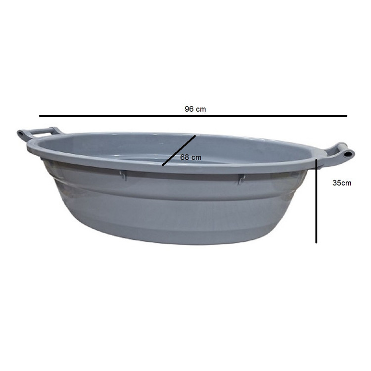 سایر توضیحات: وان بیضی حمام تسا با ابعاد بیرونی دسته تا دسته 96 عرض 68و ارتفاع 35 سایز و ابعاد داخلی وان طول 79 عرض 61 و ارتفاع 33 برای شستشوی چند پتو و تشک و حتی برای استفاده حمام نیز قابل استفاده است دارای دودسته محکم در طرفین برای حمل آسان تر(شیر تخلیه ندارد)