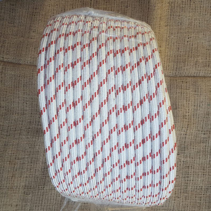 طناب به قطر 8 میلی متر طول طناب 10 متر بافت طناب از جنس ابریشم مغزی طناب نیز ابریشمی تحمل کشش تا 800 کیلوگرم