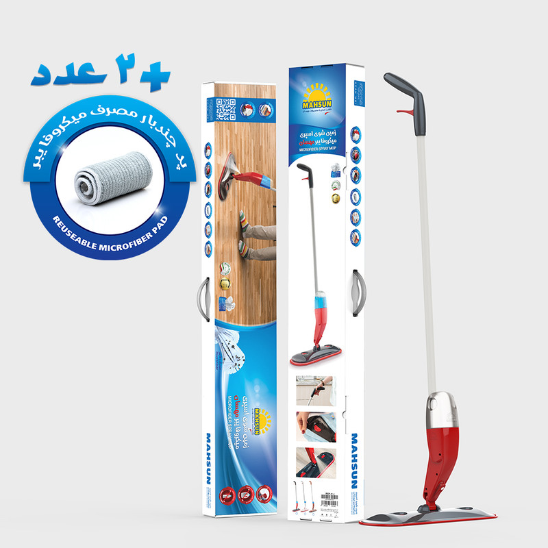 زمین شوی اسپری مهسان کد 1500 دارای مخزن 400 میلی لیتری است و مناسب برای ضد عفونی کردن و نظافت هر نوع سطحی می باشد. با یکبار پر کردن مخزن، میتوانید 400 مترمربع را نظافت کنید.در کارتن بسته بندی این محصول دو عدد پد نظافتی از جنس میکروفایبر نیز موجود میباشد که دارای قدرت پاک کنندگی فوق العاده هستند.منسوجات میکروفایبر قابلیت جذب فوق العاده آب (تا7برابر وزن خود)و قدرت پاک کنندگی بسیار زیادی دارند و برای شستشو نیاز به ماده شوینده شیمیایی نداشته و با آب رابطه مستقیمی دارند.علاوه بر پدهای نظافتی میتوان زمین شوی اسپری مهسان را به همراه یک برگ از دستمال های میکروفایبر مهسان نیز استفاده نمود، برای این منظور دو گیره پلاستیکی جهت نصب دستمال بر روی بدنه تعبیه شده است.مفصل کفی این محصول به گونه ای طراحی شده است که زمین شوی اسپری مهسان به آسانی در تمام جهات چرخیده و نظافت سطوح با دسترسی های مختلف را امکان پذیر مینماید.این محصول به علت سبک بودن برای نظافت دیوار وسطوح دیگر نیز مناسب است (با جداکردن مخزن)