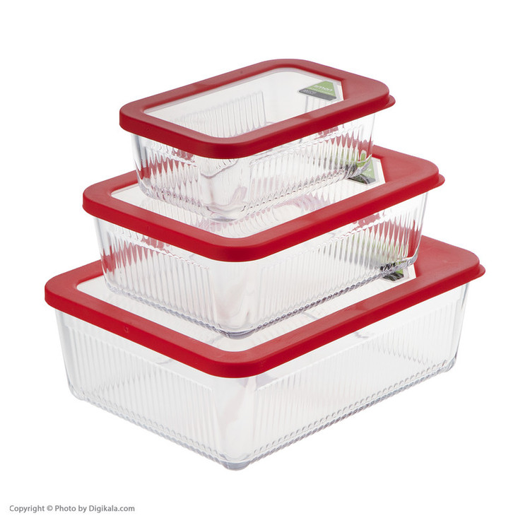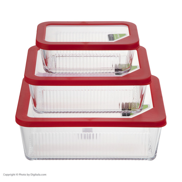 - قابلیت تحمل دما تا 230 درجه سانتیگراد - حجم ظرف بزرگتر 2.250 لیتر، ابعاد 24×8×18 سانتیمتر و وزن 1140 گرم - حجم ظرف متوسط 1.1 لیتر، ابعاد 20×7×15 سانتیمتر و وزن 745 گرم - حجم ظرف کوچک 450 میلی لیتر، ابعاد 16×6×11 سانتیمتر و وزن 410 گرم