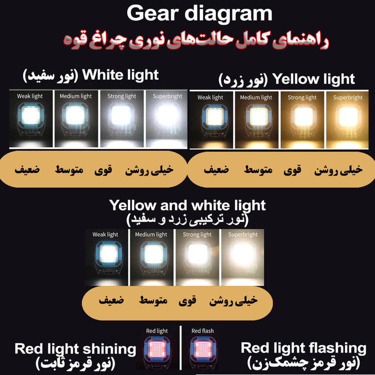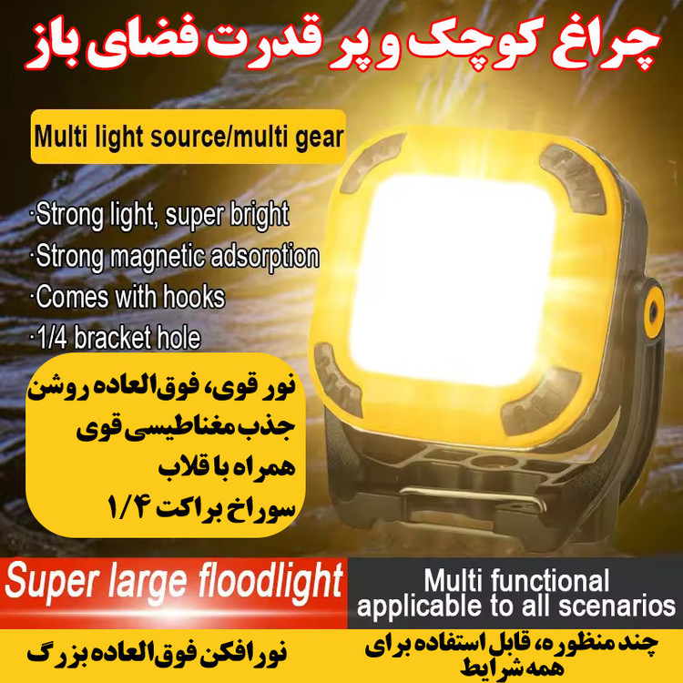 در بخش طراحی و کاربری، چراغ با وزن سبک و حمل آسان ارائه میشود تا بتوان آن را به راحتی حمل کرده و در هر مکانی از آن استفاده کرد. فناوری مغناطیسی قوی برای جذب و نگهداری در محلهای فلزی، همراه با امکان USB Direct Charging، کاربر را از حمل منابع نور اضافی بینیاز میکند. با این مجموعه نور، نه تنها برای فعالیتهای خارج از منزل بلکه برای کارهای تخصصی مانند نقشهبرداری، کارگاههای ساختمانی و کمپینگ، نوردهی مناسب و مداوم فراهم میشود. در کل، این چراغ یک راه حل روشنایی کاربردی با کاربری چندمنظوره است که با انرژی کارآمد، دوام بالا و طراحی کاربرپسند، پاسخگوی نیازهای متنوع کاربران است.