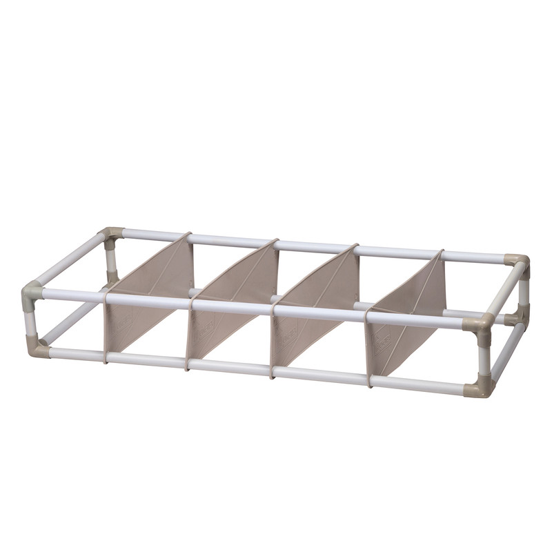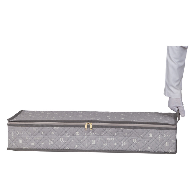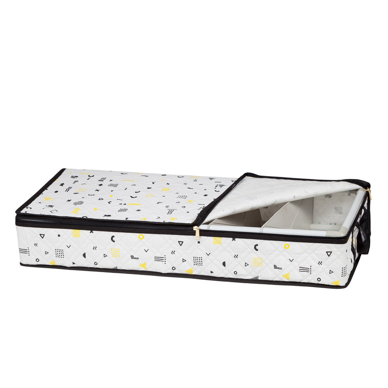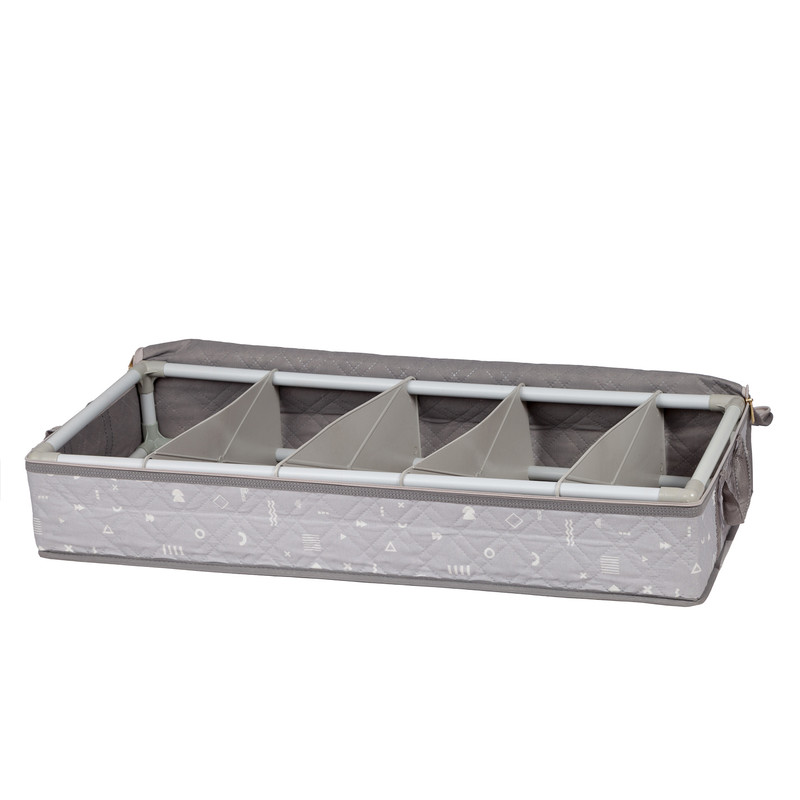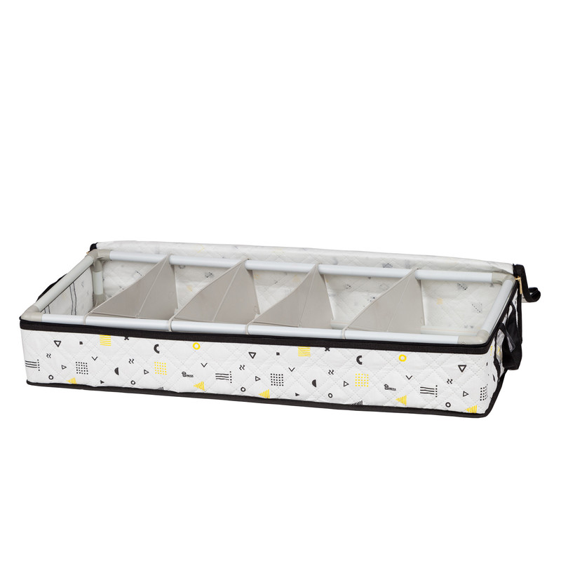 باکس زیرتختی هومتکس به دلیل جنس پارچه ای خود بسیار سبک است. ساختار اسکلتی این ارگنایزر از جنس پی وی است که شکل ظاهری آن را حفظ می کند، استحکام و مقاومت این نظم دهنده را افزایش می دهد و از وارد شدن فشار بیرونی به محتوا داخل منظم کننده جلوگیری می کند. باکس زیر تختی دارای چهار صفحه جداکننده است که آن را به نظم دهنده ای پنج خانه برای نگهداری وسایل تبدیل می کند. صفحه های جداکننده و بخش های این منظم کننده قابلیت جابجایی و تغییر دارند، به گونه ای که شما می توانید آن را به نظم دهنده ای چهارخانه، سه خانه، دوخانه با اندازه هایی متناسب با نیازتان تبدیل کنید و حتی صفحه های جداکننده را نصب نکرده و از خود باکس زیرتختی استفاده کنید.