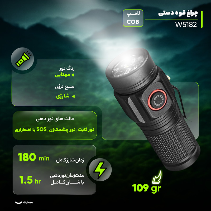چراغ قوه دستی مدل W5182 با نور مهتابی