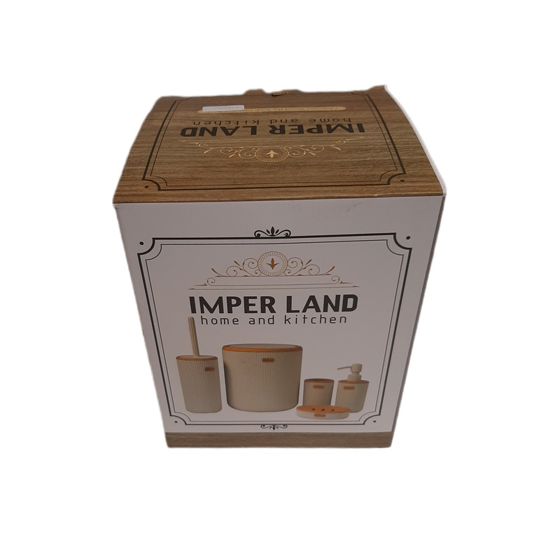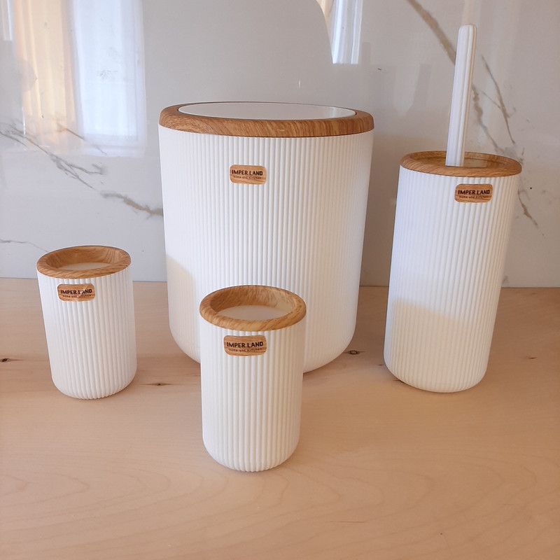 توضیحات ابعاد: سطل ذباله به ارتفاع ۲۵ سانت قطر ۲۰ برس ارتفاع ۳۵ سانت قطر ۱۰ محفظه مسواک ارتفاع ۱۳ قطر ۸ جای صابونی طول ۱۴ سانت عرض ۱۱ سانت و ارتفاع ۴ سانت جای مایع ارتفاع ۱۹ قطر ۸ سانت