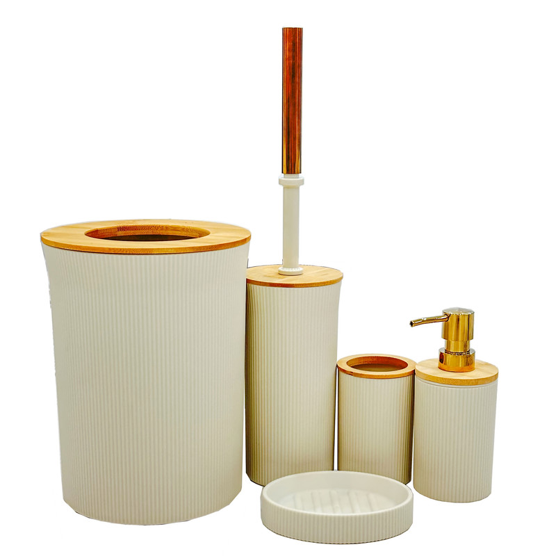 ست سرویس بهداشتی 5 پارچه لیمون مدل درب چوبی کد RM2392