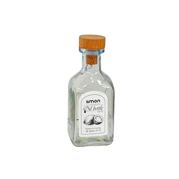بطری 130 میلی لیتر درب چوبی لیمون، از جنس شیشه است. این محصول مناسب سرو و نگهداری آبلیمو، روغن زیتون و … می باشد.