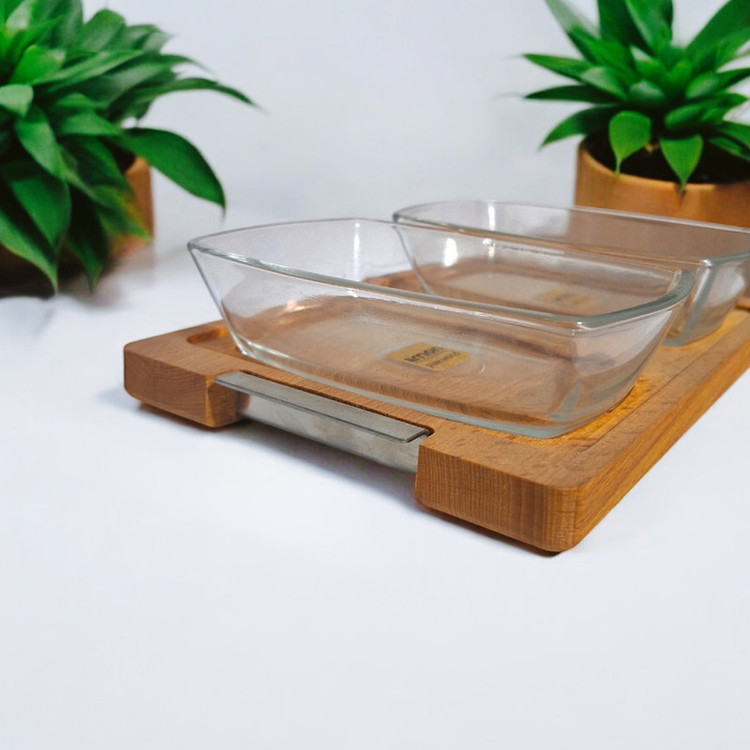 این اردوخوری یک محصول شیک، جمعوجور و دوتکه است که برای سرو هدفمند و جداگانه انواع تنقلات، مغزها، مزهها یا سسهای مختلف روی میز پذیرایی ایدهآل است. تعداد خانه: ۲ عدد ظرف مجزا مدل: مستطیل و دوتکه جنس ظرف ها: شیشه باکیفیت و شفاف جنس پایه (سینی): چوب طبیعی جنس دسته سینی: استیل ابعاد پایه: طول ۲۲ سانتیمتر، عرض ۱۴ سانتیمتر، و ارتفاع ۵ سانتیمتر ویژگیهای کلیدی: این مدل با ترکیب ظروف بلور شفاف و استند چوبی مستطیلی، ظاهری مدرن و کاربردی دارد و برای چیدمانهای کوچکتر و سرو دو نوع خوراکی مناسب است.