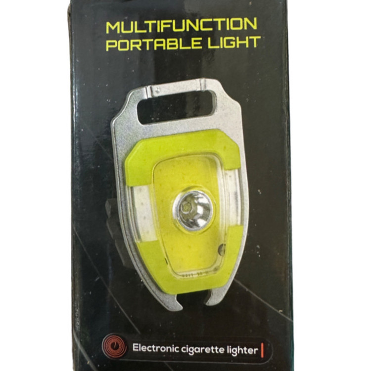 و با برداشتن دست از روی دکمه فندک خاموش می شود. این چراغ قوه چند کاره دارای سوت نجات و همچنین قابلیت چراغ پیشانی دارد که در مواقع اضطراری می توان از آن استفاده کرد. پشت چراغ قوه یک آهنربا وجود دارد که موقع کار می توان به سطوح فلزی متصل کرد.دارای اقلام : - فندک - آهن ربا - کش سر برای چراغ پیشانی - نور مرکزی ، نور COB - نور آبی- نور قرمز و آبی بصورت چشمک زن - درب بازکن - دارای سوت می باشد.