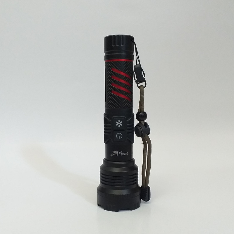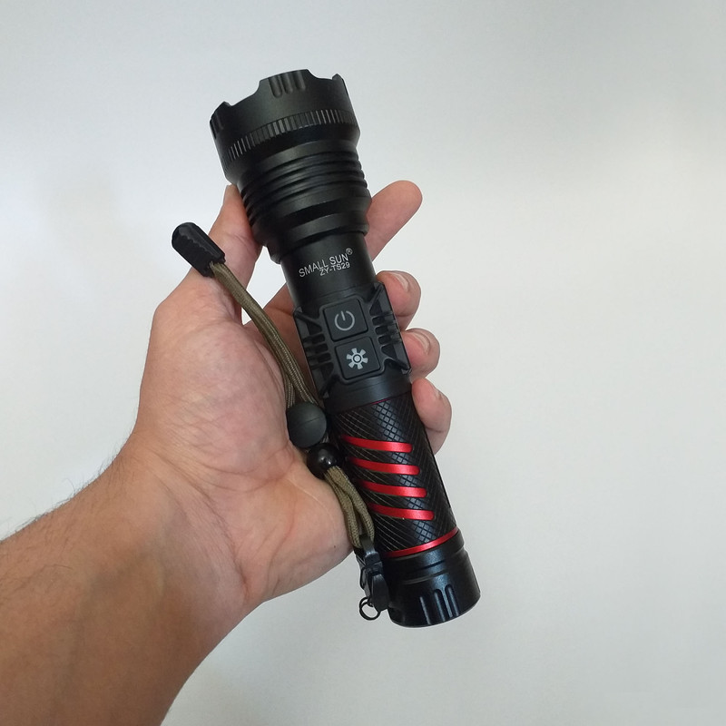 چراغ قوه شارژی اسمال سان SMALL SUN سِری تی اس (TS) نسل جدید چراغ قوه های کمپانی معتبر اسمال سان با تکنولوژی لامپ های نسوزِ جدید P90 که تا 1500 متر قدرت پرتاب نور بصورت نقطه زن را داراست و در 3 حالت: نور زیاد / نور کم / نور چشمک زن روشن میشود همچنین در سمت چپ چراغ قوه لامپ SMD تعبیه شده که میتواند براحتی یک چادر چهار نفره را روشن کند و در 2 حالت: نور زیاد و نور کم روشن میشود و نیز در سمت راست چراغ قوه لامپ فلشر تعبیه شده که در 3 حالت: ثابت قرمز / چشمک زن قرمز و رقص نور چند رنگ روشن میشود و در مواقع اضطراری برای علامت دادن یا هدایت گروه بسیار کاربردی است ، از دیگر ویژگی های منحصر به فرد این چراغ قوه مدار بسیار قدرتمند آن است دارای خروجی USB بوده و در مواقع ضروری همانند یک پاوربانک میتواند گوشی موبایل را برای دو الی سه تماس اضطراری شارژ کند و با هر دو باتری سایز 26650 و 18650 کاملا سازگار است ، بدنه چراغ قوه نیز از آلیاژ آلومینیوم سخت با پوشش رنگ کوره ای ساخته شده و در مقابل شوک های شدید مقاومت بالایی دارد همچنین کاملا در مقابل برف و باران و پاشش آب مقاوم است و در هر نوع شرایط جوی و محیطی میتوان از چراغ قوه اسمال سان TS29 استفاده کرد .