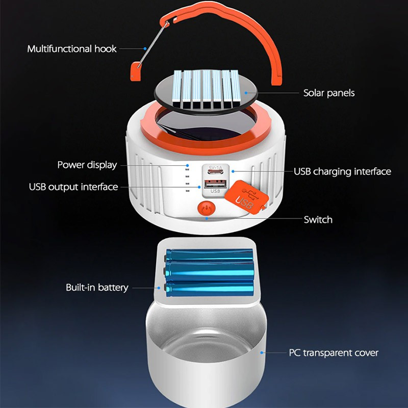 جنس لامپ شارژی خورشیدی 80 وات HS-V65 ازABS (نشکن) ساخته شده است و همین امرباعث شده تا در برابر ضربه مقاوم باشد. این لامپ شارژی بسیار زیبا طراحی شده است و دارای 5 حالت نوردهی پر نور و متوسط ، کم نور، چشمکزن آرام و سریع می باشد. قدرت نور این لامپ 80 وات و نوع رنگ آن نیز مهتابی سفید بوده و همچنین توان نوردهی بین 3 تا 6 ساعت را دارد. در بالای این چراغ حلقه آویزی برای نصب راحت وجود دارد و می تواند بهترین وسیله برای داخل چادر باشد چون داخل اکثر چادرهای مسافرتی جای وصل کردن لامپ وجود دارد . ازین وسیله نه تنها در مسافرت، کمپینگ، و کوهنوردی، بلکه می توان در منزل برای مواقعی که دچار قطعی برق می باشید استفاده کنید.