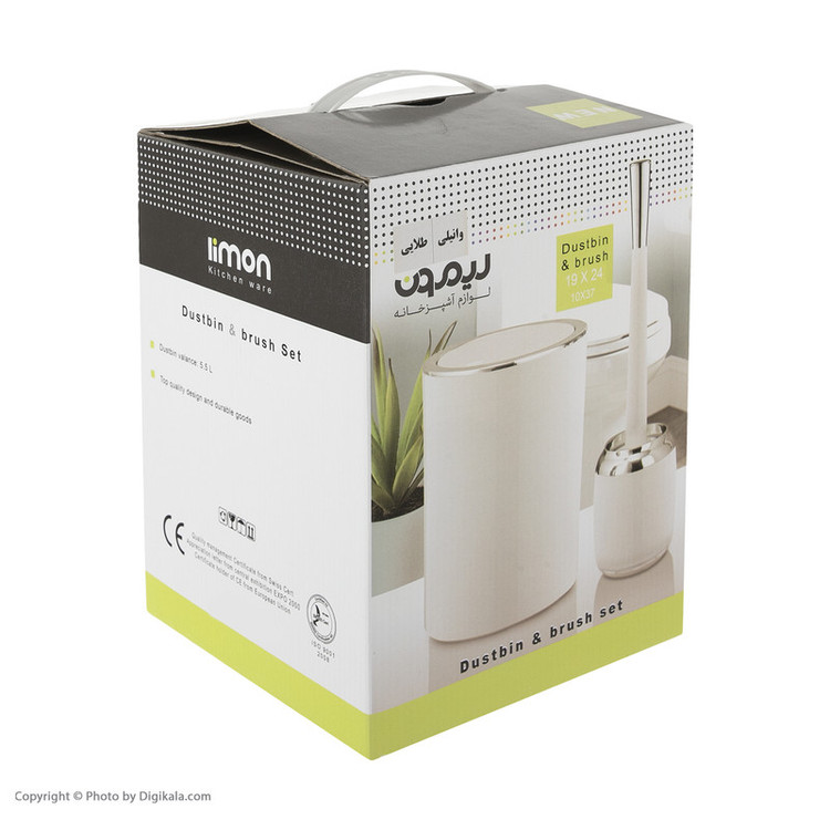 - سطل 5.5 لیتری - فرچه با طول دسته 25.5 سانتی متر - بدنه محفظه فرچه از پلاستیک براق و شفاف