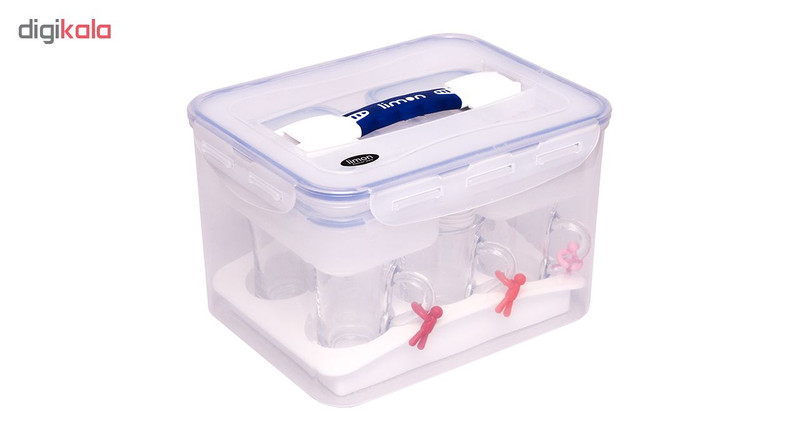 شامل: - 6 عدد لیوان با ابعاد 10*7 - 6 قاشق با ارتفاع 13 سانتی متر - ابعاد ظروف داخلی : 5*11*18