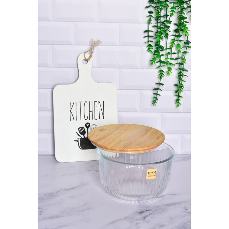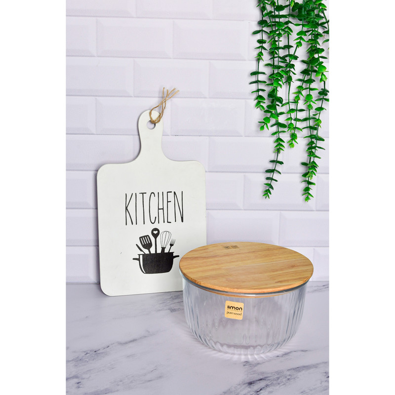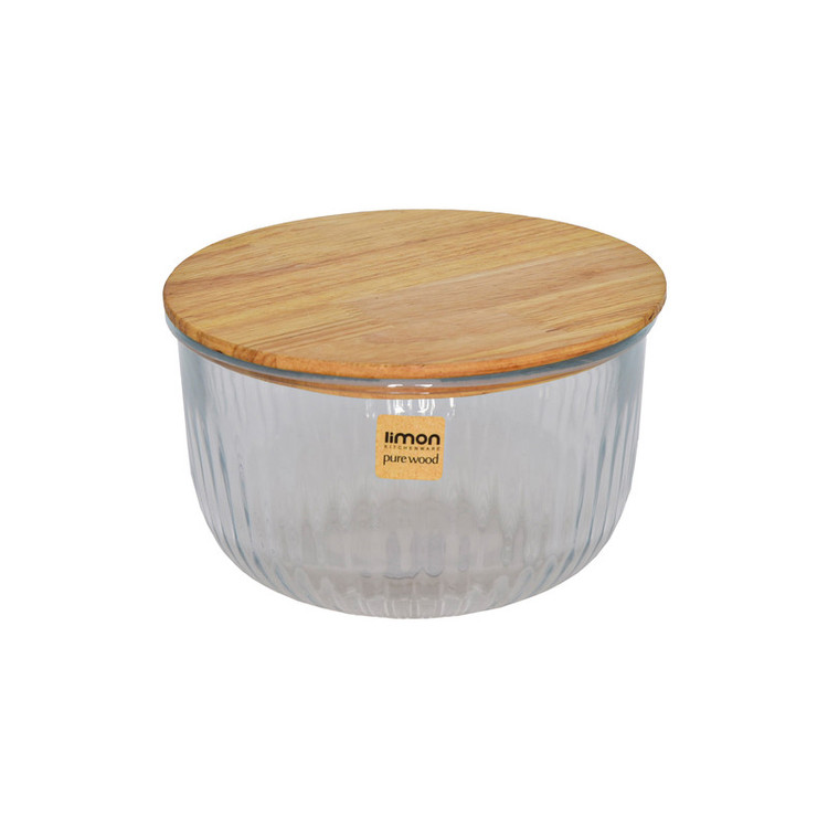 درب این ظرف شیشه ای است و بدنه دارای شیارهای موازی بر روی خود است. ترکیب شیشه و چوب در این ظرف بسیار زیبا شده است و برای استفاده روزانه و دورهمی ها جهت تنقلات گزینه مناسبی است.واشر سیلیکونی اطراف درب از وارد شدن هوا به داخل ظرف جلوگیری می کند که باعث میشود مواد داخل آن برای مدت طولانی تری تازه بمانند و در صورت نگهداری در یخچال بوی مواد غذایی را به خود نمی گیرد. این ظرف قابلیت استفاده در یخچال، فریزر، مایکروفر و فر را دارد.