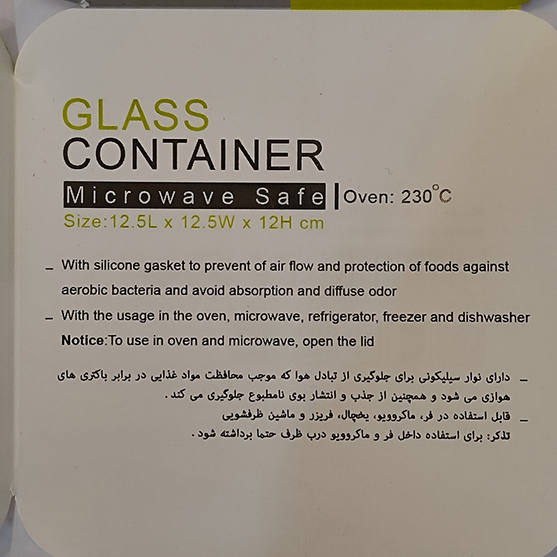 قابل استفاده در فر،آون و مایکروویو تحمل دما تا 230 درجه موقع استفاده در فر حتما درب ظرف برداشته شود