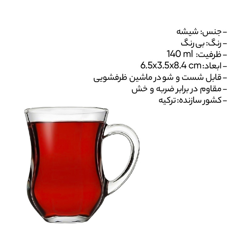 استکان پاشاباغچه مدل دم کد 55373 بسته 6 عددی
