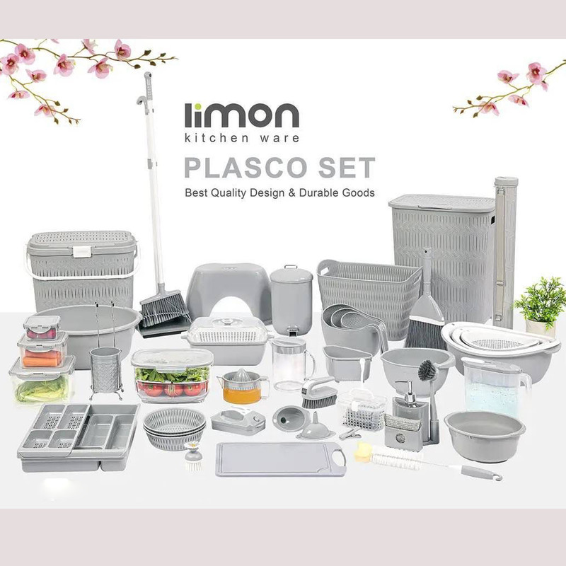 سرویس جهیزیه لیمون محصولی فوق العاده برای آشپزخانه شماست . این محصول شامل 58تکه از بهترین و پرکاربرد ترین لوازم پلاستیکی مورد نیاز هر آشپزخانه ای است . محصولات لیمون کاملا از پلاستیک درجه یک و براق ساخته می شوند و در بالاترین سطح محصولات پلاستیکی موجود در بازار قرار دارند . این سرویس در یک کارتن به بهترین شکل ممکن چیده شده است و برای حمل و نقل و استفاده در جهیزیه عروس بسیار کاربردی می باشد . این آیتم شامل 58 پارچه (31 آیتم) است .