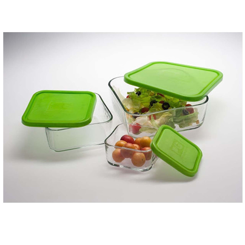 شامل سه ظرف در سه سایز متفاوت به همراه درپوش در سه سایز متفاوت: ظرف بزرگ: ارتفاع 7.5 و عرض 20 سانتیمتر ظرف متوسط: ارتفاع 6.5 و عرض 16 سانتیمتر ظرف کوچک: ارتفاع 5.5 و عرض 11 سانتیمتر قابل استفاده در ماکروویو ، یخچال قابلیت شستشو با ماشین ظرفشویی