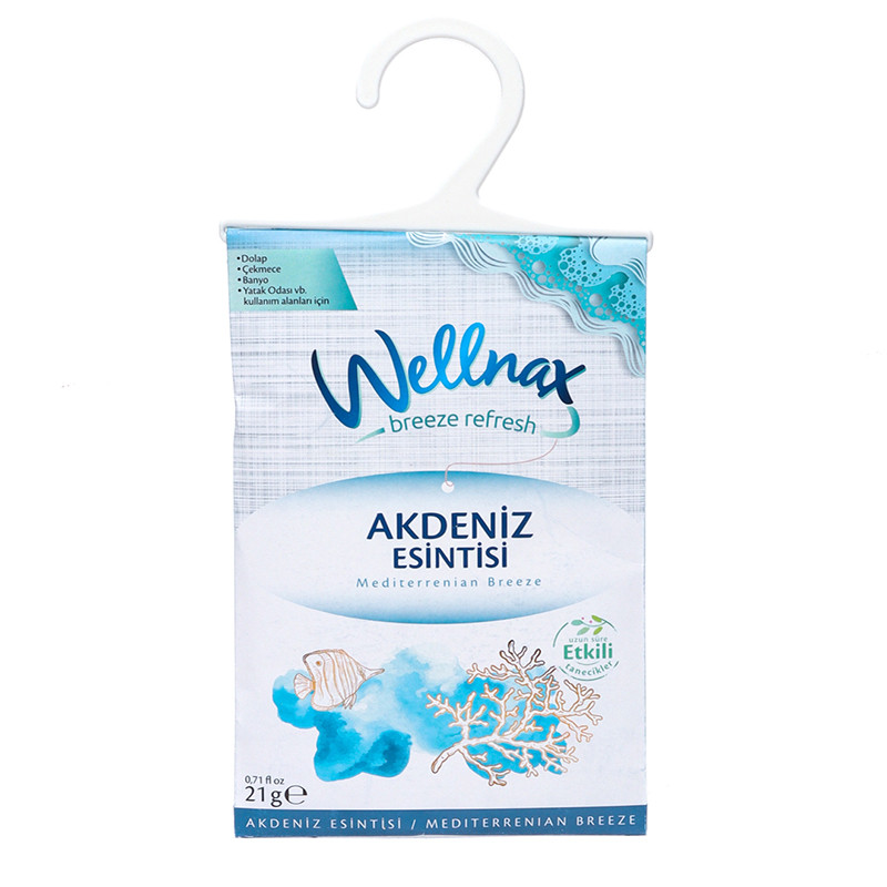 خوشبو کننده های کمد و لباس مدل Breeze از جمله محصولات کاربردی و پرطرفدار برند ترکیه ای Wellnax هستند که از جمله تولید کنندگان معتبر مواد و لوازم شوینده و بهداشتی می باشد. این خوشبو کننده ها در بسته های 21 گرمی عرضه شده و دارای رایحه های متنوع و نسبتا قوی می باشد که می تواند برای خوشبو نگاه داشتن کمد و کشوهای حاوی لباس، رخت خواب و حتی سرویس بهداشتی و محل کار و زندگی استفاده شود. این محصول به شکل پاکتی درون یک لفاف سلفونی به دست شما می رسد. برای استفاده کافیست تا پاکت را از سلفون خارج کرده و در محل مورد نظر قرار دهید. برای راحتی یک گیره آویز نیز روی این پاکت قرار دارد که به شما امکان آویزان کردن آن را روی میله کمد یا سطوح دلخواه دیگر می دهد. به یاد داشته باشید که افراد داری آسم و سایر بیماری ها تنفسی نباید در معرض این خوشبو کننده قرار بگیرند و محتویات این خوشبو کننده مناسب تماس با پوست نمی باشند و می بایست از دسترس کودکان دور نگاه داشته شوند.