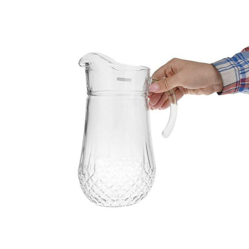 کاملا شفاف و بی رنگ ارتفاع: 26 سانتی متر قطر دهانه : 12 سانتی متر گنجایش : 1.7 لیتر وزن پارچ : 1170 گرم
