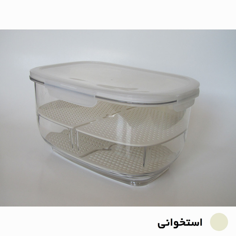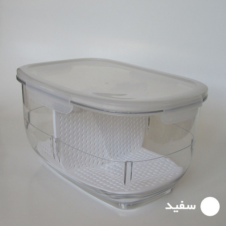 باکس میوه و سبزیجات بزرگ و کوچک مناسب برای نگهداری میوه جات و سبزیجات، به صورت تفکیک شده می باشد. آبگیر تاشوی این محصول این امکان را فراهم می کند تا انواع میوه جات و سبزیجات با هر سایزی را به راحتی تفکیک کرد. واشر سیلیکونی درب باعث جلوگیری از جذب و انتشار بوی نامطبوع در یخچال می شود و نیز از ورود هرگونه میکروب و باکتری به داخل ظرف جلوگیری می کند در نتیجه موجب ایجاد طراوت و تازگی طولانی تری برای محتویات داخل ظرف می گردد.