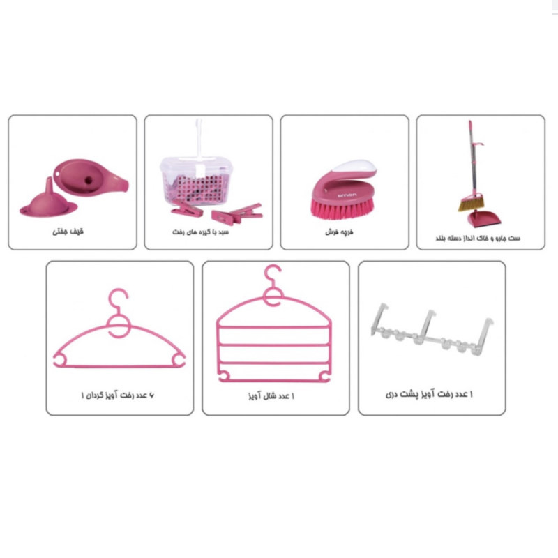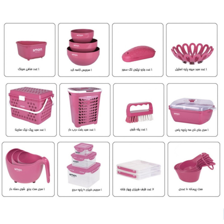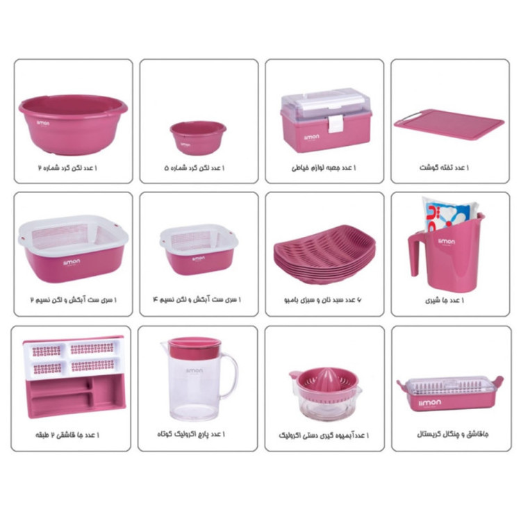 شامل: جارو , خاک انداز , کاسه , آبکش , چهارپایه , پارچ , ظرف نان , سطل زباله , جاقاشقی , تخته گوشت